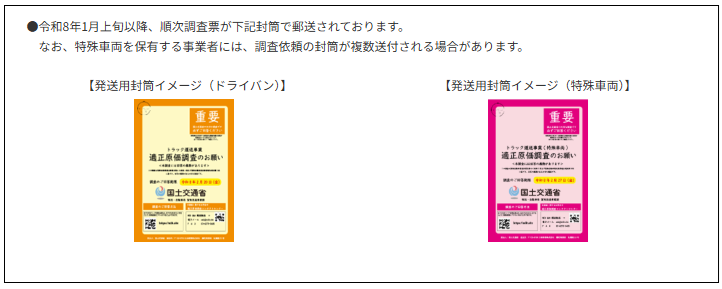 | トラック運送事業の適正原価に関する実態調査 回答はここをクリック | ![]() <QRコード> |